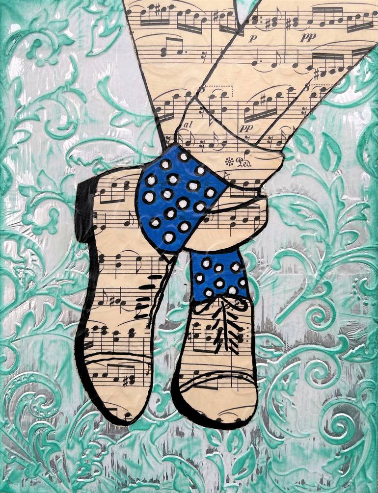 LEAVING FOOTPRINTS is a mixed media collage (acrylic and paper on woodpanel canvas). Edges are a collage of vintage paper for a unique interior style on your wall, so framing is not necessary. It is UV-varnished for protection and ready to hang. Martina's works are acrylic paintings on a highly te...