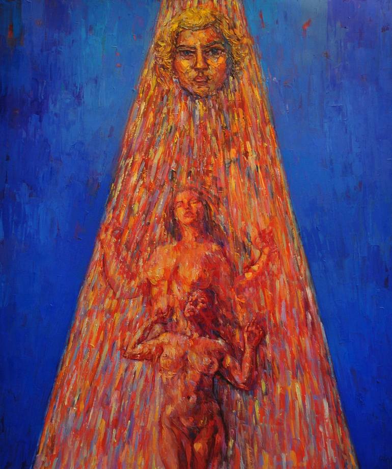 L'autore con quest'opera ci vuole introdurre a una visione spirituale e al significato stesso di trascendenza. Si può notare come dal basso il corpo umano si eleva verso l'alto trasmutando gradualmente in un corpo più sottile verso una ascensione spirituale.La coscienza prende forma spirituale, l'uo...