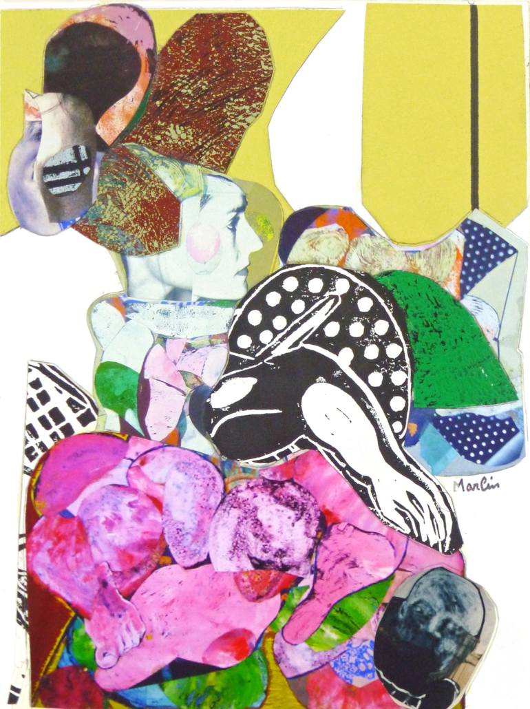 On n'est pas obligé d'être attiré par ces superpositions de rondeurs, il n'en est pas moins vrai qu'elles interpellent ! Ces monstres difformes d'un réalisme saisissant sont posés à l'huile ou à l'acrylique sur toile. Mais ce n'est pas tout, loin de là. L'artiste joue les superpositions, bien visibles quand on se place sur le côté de la toile et que les reflets de lumière accusent les épaisseurs. Utilisant la technique du collage qui se devait, à l'origine, de stimuler l'invention créatrice, Marlin emploie tout ce qui lui tombe sous la main - des bouts de tissus, des fragments de papier calque ou de papier-patron couture - qu'il découpe, compose, mélange, réhausse de couleurs, voire de morceaux de radiographies, fémur, colonne vertébrale, savamment placés à certains endroits pour créer des ombres. Le travail de Marlin, très répétitif, ne manque pas d'attirer la curiosité comme au cirque on s'amuse au spectacle du nain à bosses multiples faisant sur la piste ses pirouettes. On songe aussi aux poupées de celluloïd et de chiffon de notre enfance si souples qu'on pouvait en contorsionner sans risque bras et jambes et même zieuter, un peu sadiquement, les sombres points d'ancrage où se fixaient les membres. Tous ces personnages "impitoyables et graves" constituent un univers peu banal, parfois effrayant nuancé toutefois par une palette chromatique légère et raffinée adoucissant le propos. Pascal Marlin nous semble être un tendre gonflant ses fantasmes pour les mieux apprivoiser ! La lettre mensuelle Les chroniques de Colette Bertot / Février 2005 Pascal Marlin. Bizarre... Vous avez dit "bizarre"? A la Contrast Gallery de Bruxelles