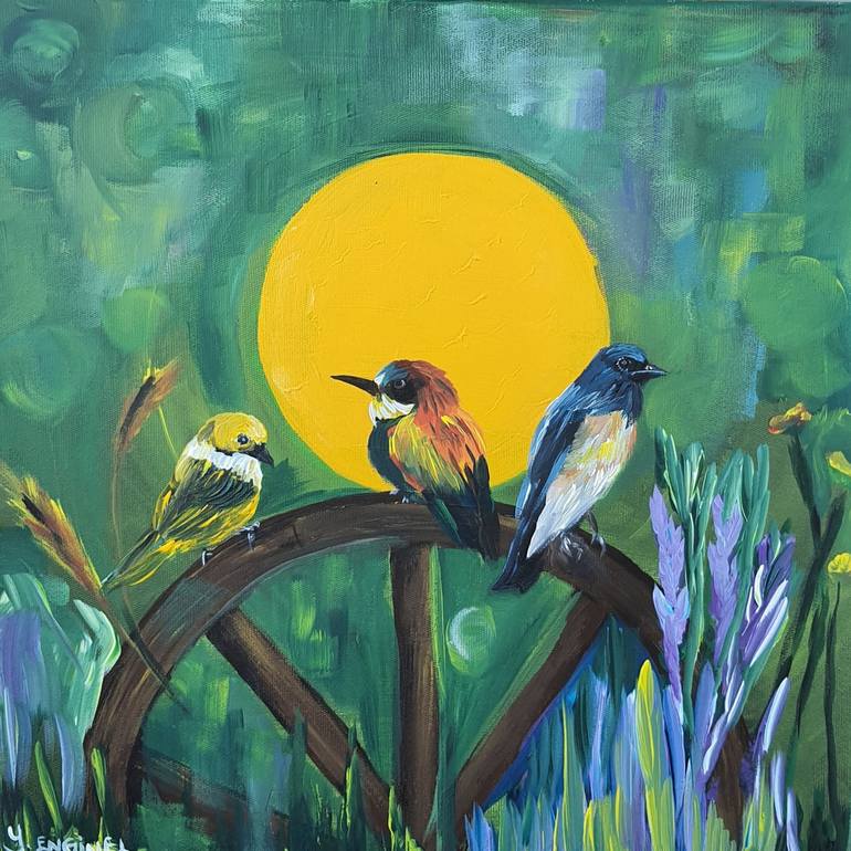 Bird's eye view has always fascinated me. they are cute and curious at the same time. this painting is completely original from my point of view. It will be shipped in a varnished and protected manner.