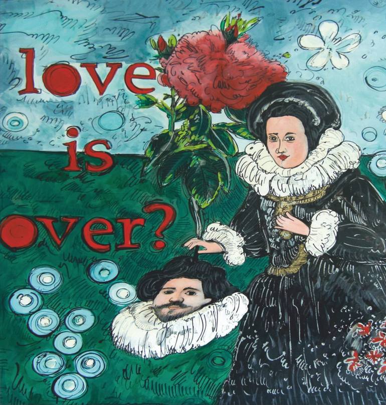 Fiorentina Giannotta (New York, 1964). Fiorentina Giannotta's poetics is characterized by a mix of history, irony and a lively exploration of colors and materials. Her works celebrate imperfect and ironic characters, immersed in imaginary and decorative landscapes, which invite the viewer to a visual and emotional participation, rather than a mere contemplation. Giannotta's characters, often inspired by historical figures or fictional protagonists, are conceived as "imaginary ancestors" with whom to establish an emotional companionship, creating a sense of personal connection and almost pleasant obsession. This choice is influenced by the ironic potential of the characters themselves. Elements such as lace, buttons, ribbons and bows add humor and lightness, making the works accessible and fascinating. Giannotta's influences range from great painters to novels and fiction, combining to create figures that express emptiness, rebellion and imperfection. Flowers and slogans are recurring elements in her works. Flowers, used as a decorative background, create artificial landscapes that reinforce the idea of an imaginary world. Slogans, such as “live, laugh and love” or “I am not the Mona Lisa of the Louvre but the Mona Lisa of your home”, add strength and participation to the works, involving the viewer more. Giannotta experiments with various materials in addition to classic acrylics, using industrial paints that allow her to play with consistencies and transparencies. Her favorite colors, such as Nissan green, Barbie pink, Barragan pink, butter yellow, oyster white and iridescent white, allow her to obtain both watercolor and thick effects. This technique, together with the small squiggles made with ceramic brushes, gives her works a three-dimensional and dynamic effect, further accentuating the vitality and energy of her compositions.