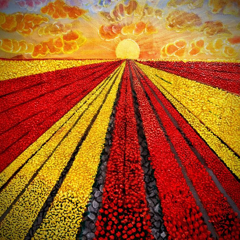 This painting is a vibrant explosion of color and texture, the artist seeks to translate the intangible essence of natural phenomena – light, energy, growth – onto the canvas. The sun, a universal symbol of life and vitality, takes center stage, representing the source of all creation and the drivin...