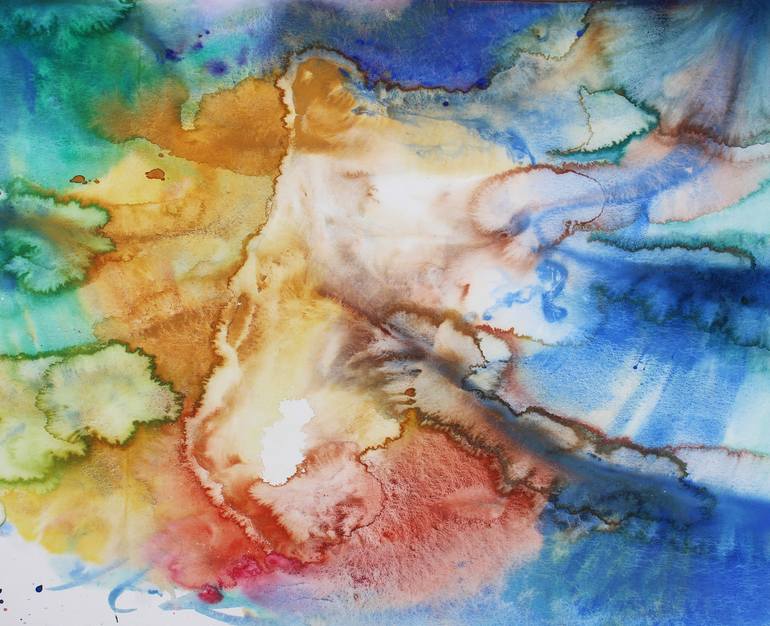 expresionismo abstracto en acuarela sobre papel inspirado en el universo