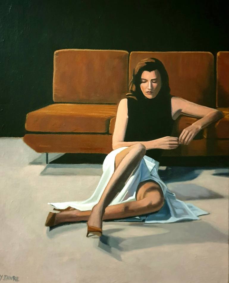 Influenced by the new American realistic painters such as Jeremy Lipking, Casey Baugh or Alyssa Monks, but also by a strong film culture whose characteristic frames he has used as inspiration, Yvan Favre also likes to paint characters who tend to evade the surrounding world. His cryptic compositions often represent portraits of women in a situation of waiting, reverie, and contemplation. As if time stood still. The imperative need to capture the moment is accompanied by an irrepressible desire to translate subtle contrasts of light ans shade Welcome to this page.