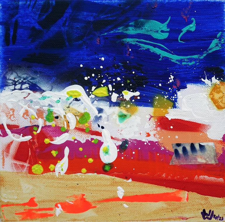 imaginary..., refers to the square scape series o.t. (life) I | acrylics, spry paint, collage on canvas | 20 x 20 cm | 04/2021