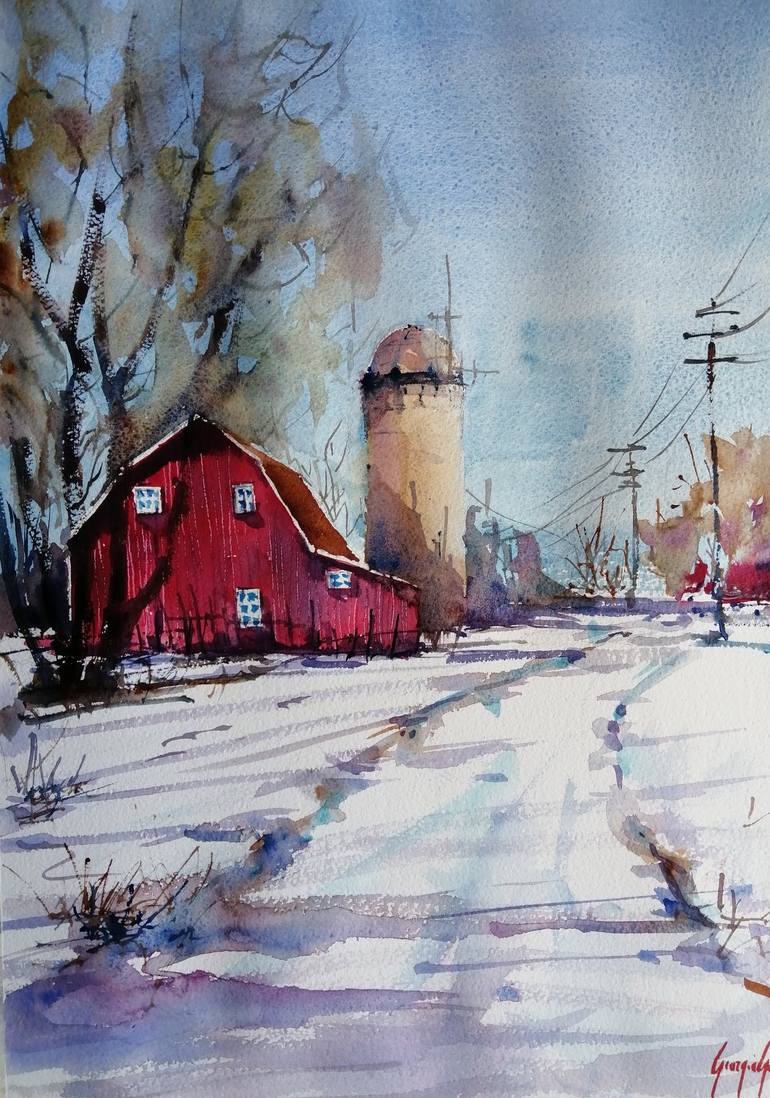 an old barn in the snow; a winter landscape for this watercolor. This artwork is done on 300 g Fabriano Artistico watercolor paper with Winsor&Newton colors. Signed on the front, the Certificate of Authenticity is included. Please don't hesitate to get in touch with me if you have any questions ...