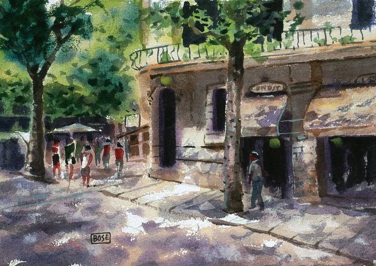 Ancient building construction and architecture. Beauty of the nature, elements of this language—its shapes, lines, colors, tones, and textures—are used in various ways to produce sensations of volume, space, movement, and light on a flat surface water color on paper medium.