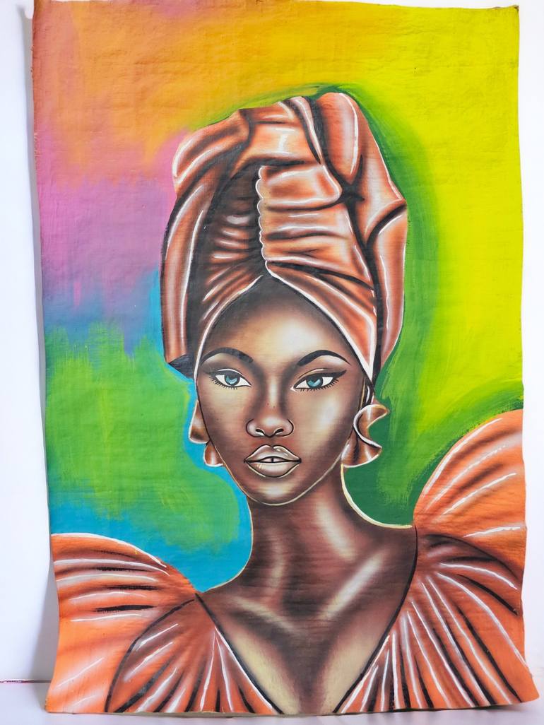 mesmerizing painting meticulously crafted by hand on papyrus paper, showcasing the exquisite beauty and cultural richness of a Nubian woman. bringing to life the spirit and vitality of the subject with captivating intensity. In this enchanting portrayal, the Nubian woman emerges as a beacon of g...