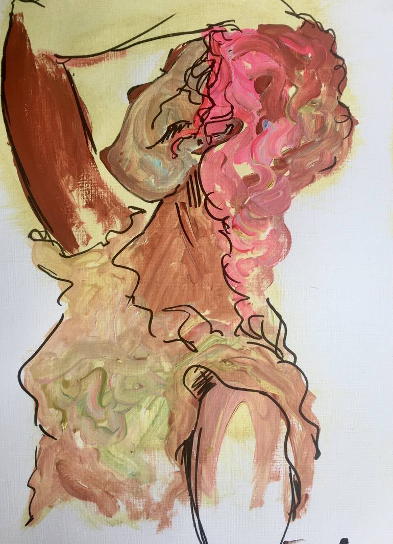 This original artwork, "pink woman improvisation", is a unique piece born from a spontaneous burst of creativity. An emotional sketch, it evolved from accidental acrylic stains into a lively and interesting abstract picture. The artist saw the image of a woman emerge and emphasized her form with a m...