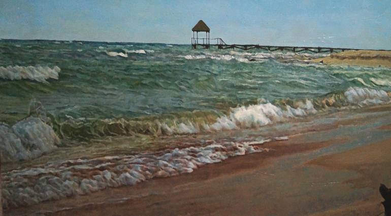 This painting was commissioned, but then the client didn't want it anymore so it joined my available paintings. Its the paintig of an image of the sea, the long and deep sea, treacherous sea, just like the client who did'nt want it anymore. Ships in a tube