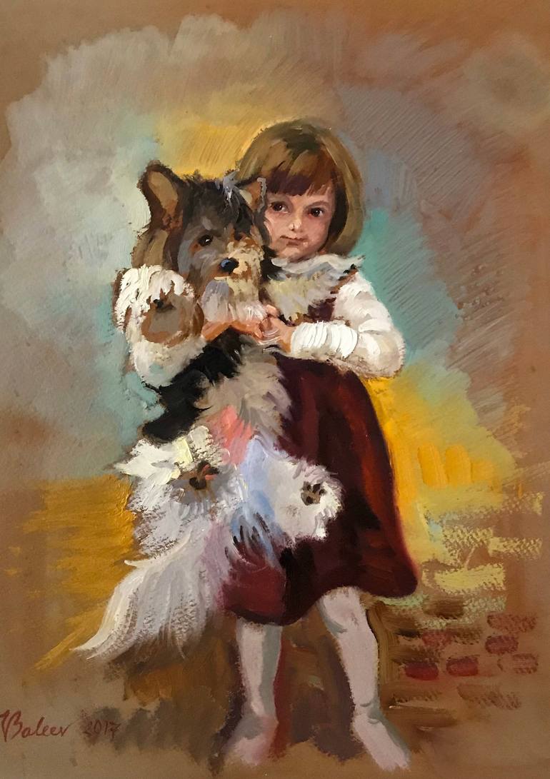 portrait of a girl with a dog picturesque sketch from life in impressionistic style
