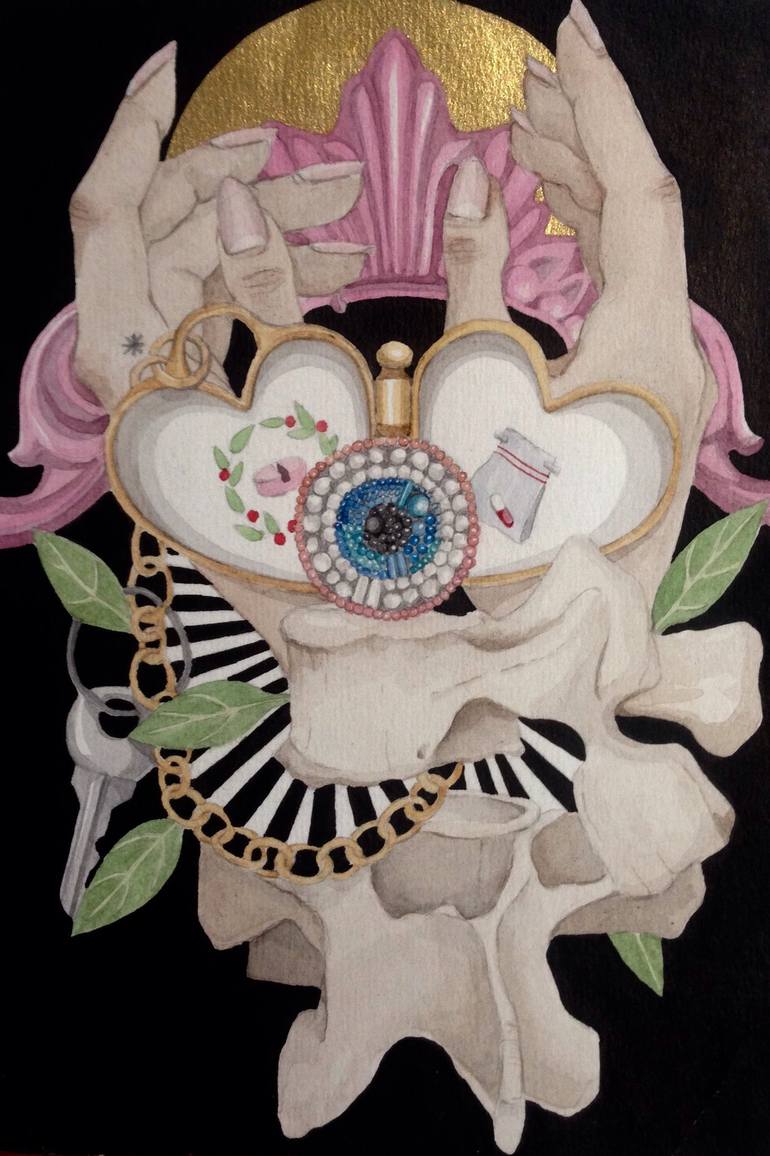 Watercolor paintings depict the monsters composed of an element of my previous work.