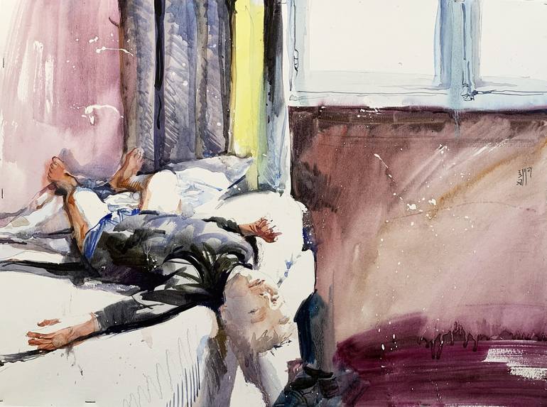 Kid on a bed in Paris hotel purple room. That's what I feel like when it's 110 out and the UV will strip your skin in 10min.