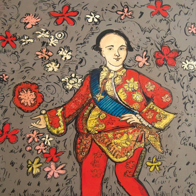 Fiorentina Giannotta (New York, 1964). Fiorentina Giannotta's poetics is characterized by a mix of history, irony and a lively exploration of colors and materials. Her works celebrate imperfect and ironic characters, immersed in imaginary and decorative landscapes, which invite the viewer to a visual and emotional participation, rather than a mere contemplation. Giannotta's characters, often inspired by historical figures or fictional protagonists, are conceived as "imaginary ancestors" with whom to establish an emotional companionship, creating a sense of personal connection and almost pleasant obsession. This choice is influenced by the ironic potential of the characters themselves. Elements such as lace, buttons, ribbons and bows add humor and lightness, making the works accessible and fascinating. Giannotta's influences range from great painters to novels and fiction, combining to create figures that express emptiness, rebellion and imperfection. Flowers and slogans are recurring elements in her works. Flowers, used as a decorative background, create artificial landscapes that reinforce the idea of an imaginary world. Slogans, such as “live, laugh and love” or “I am not the Mona Lisa of the Louvre but the Mona Lisa of your home”, add strength and participation to the works, involving the viewer more. Giannotta experiments with various materials in addition to classic acrylics, using industrial paints that allow her to play with consistencies and transparencies. Her favorite colors, such as Nissan green, Barbie pink, Barragan pink, butter yellow, oyster white and iridescent white, allow her to obtain both watercolor and thick effects. This technique, together with the small squiggles made with ceramic brushes, gives her works a three-dimensional and dynamic effect, further accentuating the vitality and energy of her compositions.