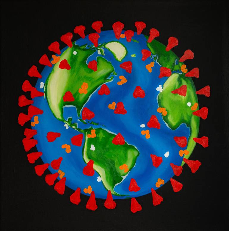 Title: "Сrowned Planet" - 100 % hand painted by artist Arina Yastrebova. Size: 39 by 39 inches (100x100 cm). Materials: acrylic, linen canvas. Colorful Abstract Planet painting would be a great addition to your acrylic painting collection. The strokes can be seen in the close-up photos. Original...