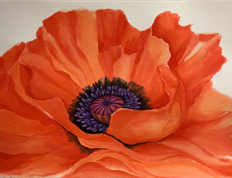 Painted with a wet on wet technique, the painting is inspired by the poppies which grow in profusion around my garden. Their bright faces and fragile petals swaying freely is such a welcome sight. The intense colour and flowing manner is compelling and challenging to capture with a few strokes on a...