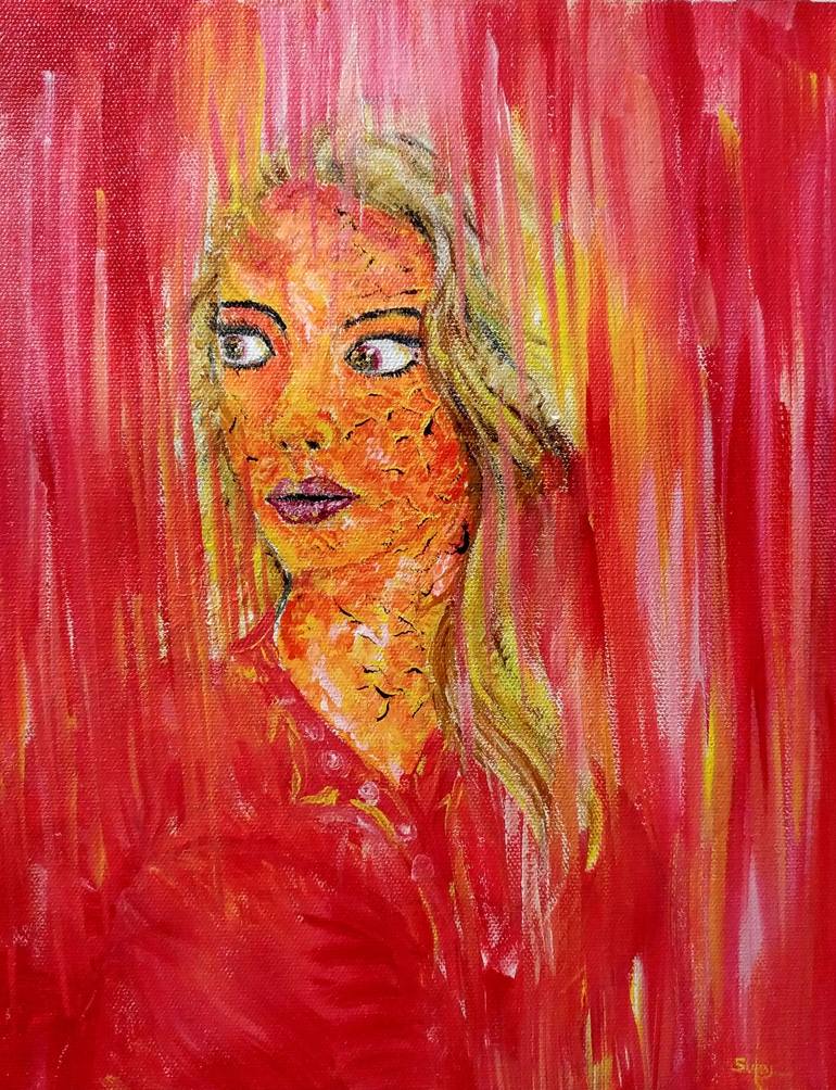 original artwork save me II acrylic on canvas painting is based on saving of expression of lady