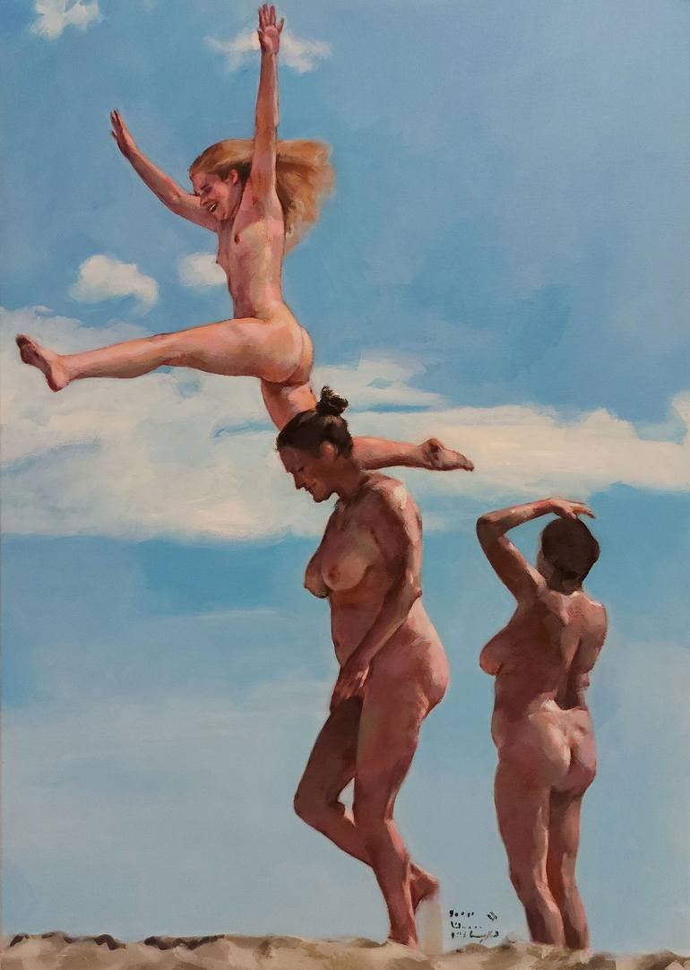 Born in Cagliari, Italy, in 1970. Lives and works in Rome. "A painter is like the sea, it can’t but reflect the Sky" My painting investigates the human figure in relation to the natural environment, focusing on the revelatory quality of this bond through a figurative language that integrates elements of structural tension and dynamic suspension. In my vision, the nude figure is an expression of integrity and individual freedom – a subject that, unburdened by veils or filters, represents the active conquest of one’s own state of being, detached from conditioning and self-censorship. The figures are immersed in natural contexts that vibrate with energy, spaces that host moments of intense manifestation where the scenery acquires an enigmatic and elusive aura, suggesting the realization of something invisible. The work explores the dialectic between the concreteness of paint and the power of the unsaid, placing itself in a dialogue between sensory realism and dreamlike suggestion.