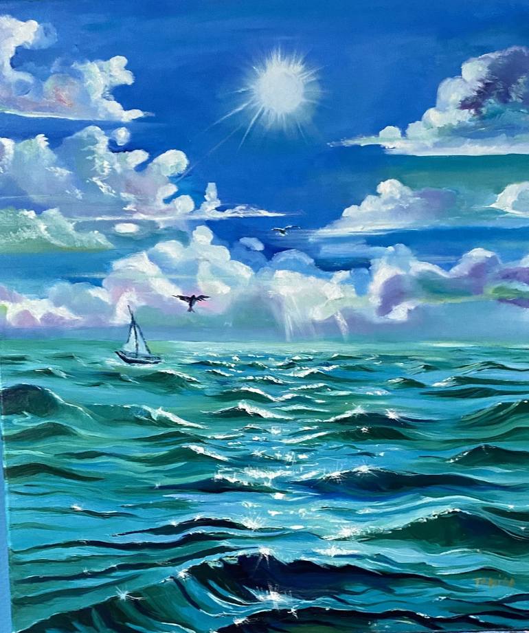 I love to paint water because it is the purity of this life. sunny sky and sea waves very beautiful landscape