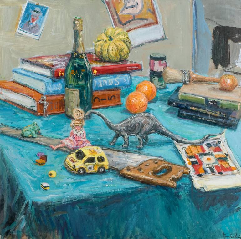 some of my children's toys , some of my books about artists i love