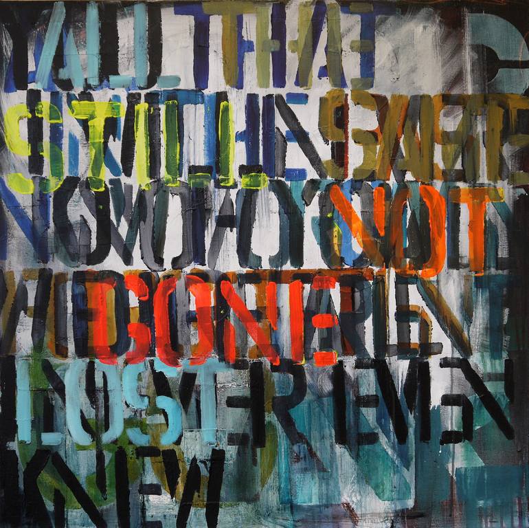 b 1971 UK Self taught artist working with many mediums but liking paint the best. Painting is just a language that I am more comfortable with, it has an honesty, it is what it is. My work is very unprocessed, direct, I don't see as I paint , just look at it sometime later, then start again or leave it alone until another time. I work with layers, building them up and scraping back, finding stuff I had forgotten about, the painting starts to get interesting, to develop its own past. The word paintings write themselves with no restraint, if I'm not sure I keep writing over, but ultimately the words, however buried, have been said.