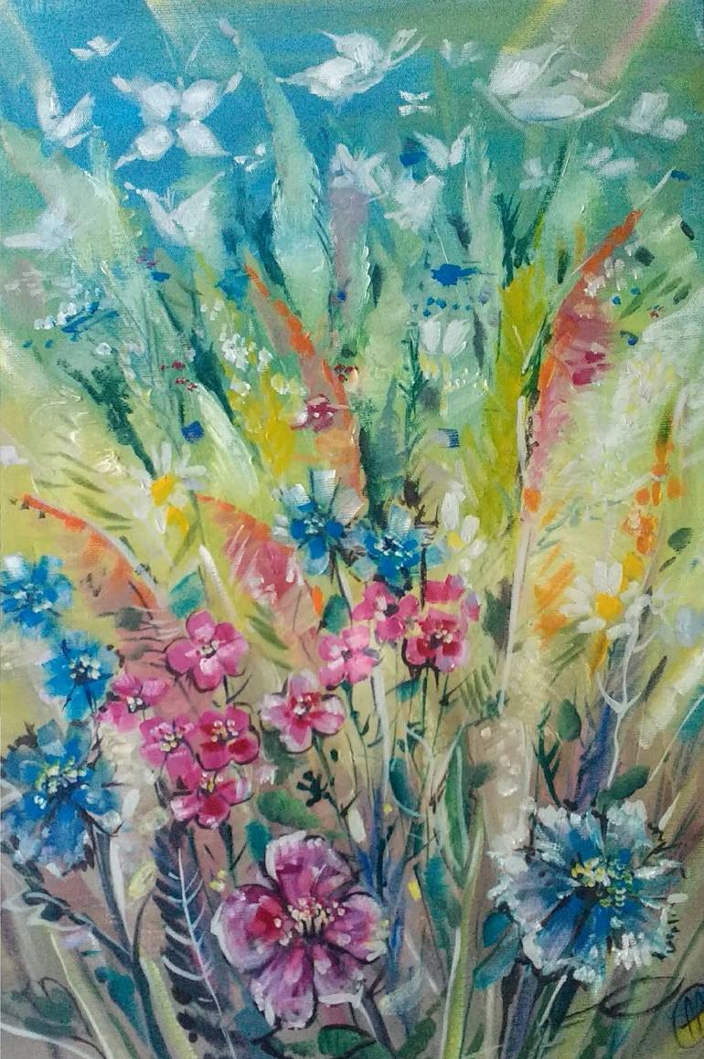 harmoniously in this Art. My Art is giving energy good mood and energy. Bright spot in the interior Size of this Art : 50cm X 35cm 19.6" X 13.7" oil paints, stretched canvas, palette knife, brushes OIL PAINTING is ready to hand Unframed Original Author's Art,It will be good Gift for people of any a...