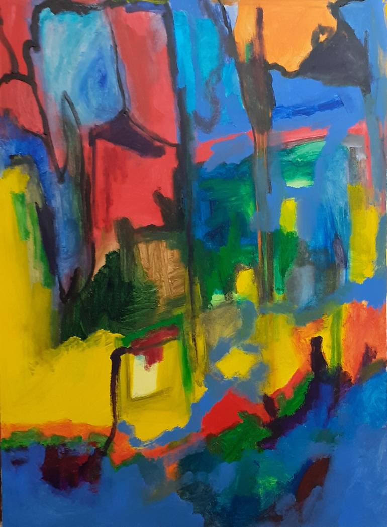it is just a spontaneous painting with a lot of energy and movement and yet if you look at it for a while you can see lots of shapes, not at all abstract, animals, faces, womean and children and so on and evry time you look you discover something new! at least this is what my husband who is also my ...