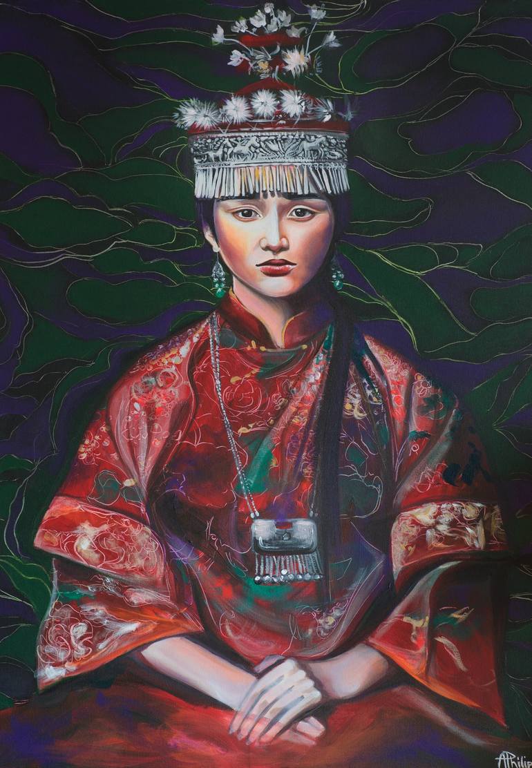 this is a portrait of a chinese girl. She is from a minority group of China called the Miao people.