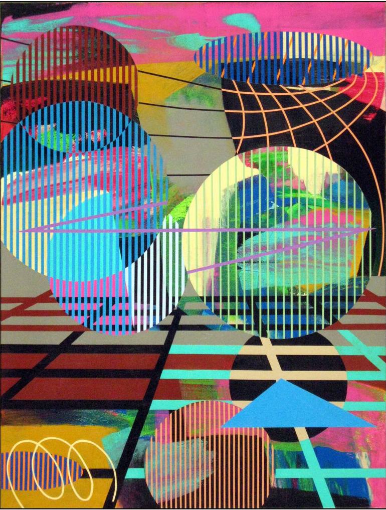 This is an example of my new work where I combine aspects of Geometric Abstraction and Abstract Expressionism with the techniques of Op Art.