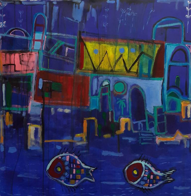 climate change and the fact that we liveclose to the sea , the beauty of the landscape around us and the fear of what could happen and symbolism of fih in my tunisian background for chasing bad things that we fear might happen!