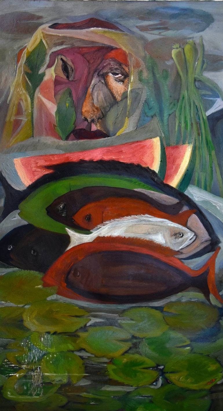 Artist: mohamed oraby Mixed media on canvas 100x50cm 2018 for inquiries contact us on