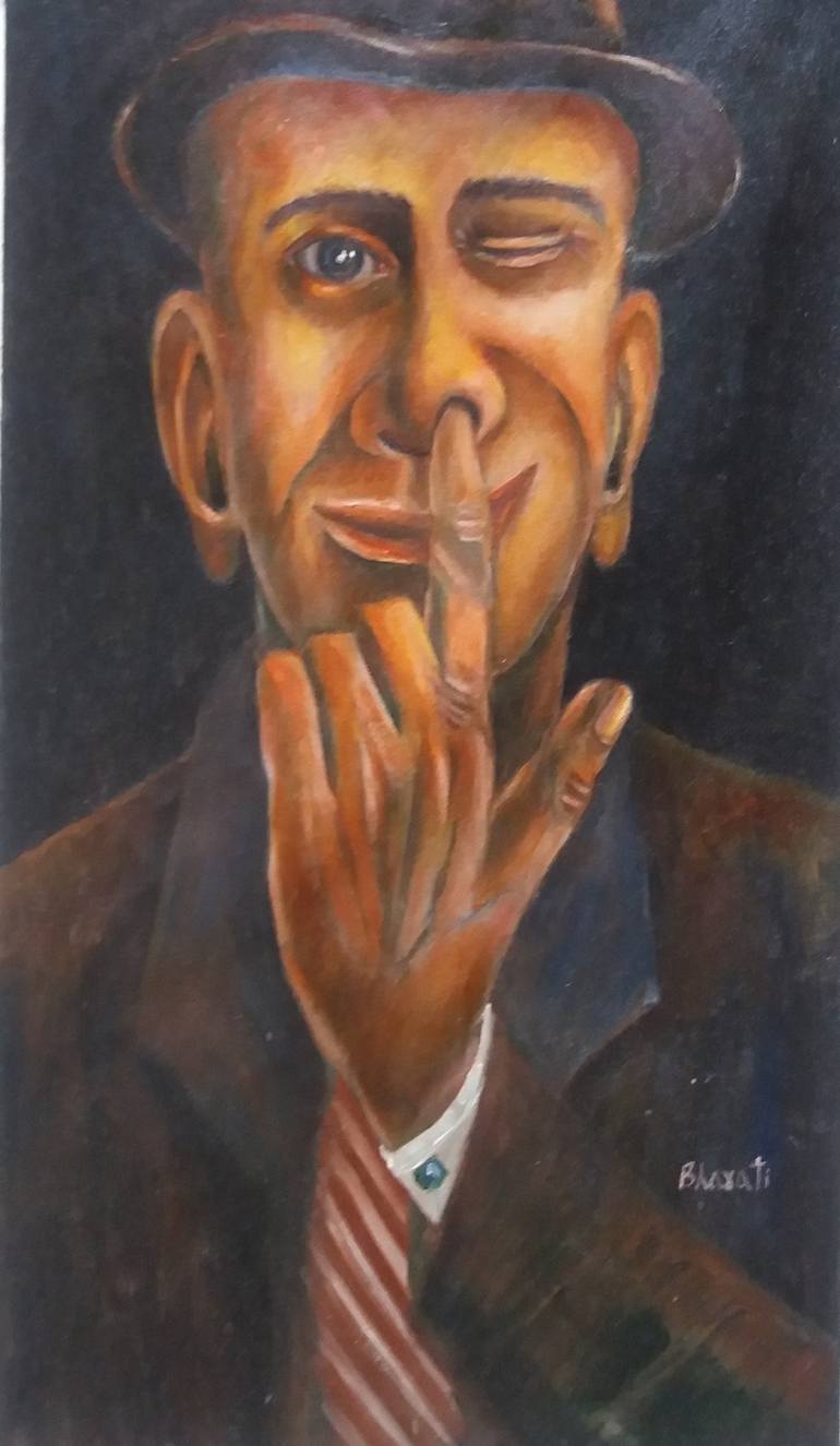 I have often heard people ask children who are digging their noses, "What are you digging for ? Gold?" the idea to paint this came from this questions. the idea is to exhibit in a humorous way the all prevalent greed in this world. I am not judging the greed or extoling the absence of it just tryi...