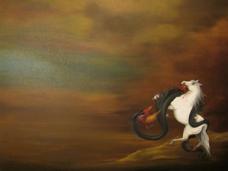 The struggle between good and bad that exist in all of us. Note the bravery of the horse despite the odds.