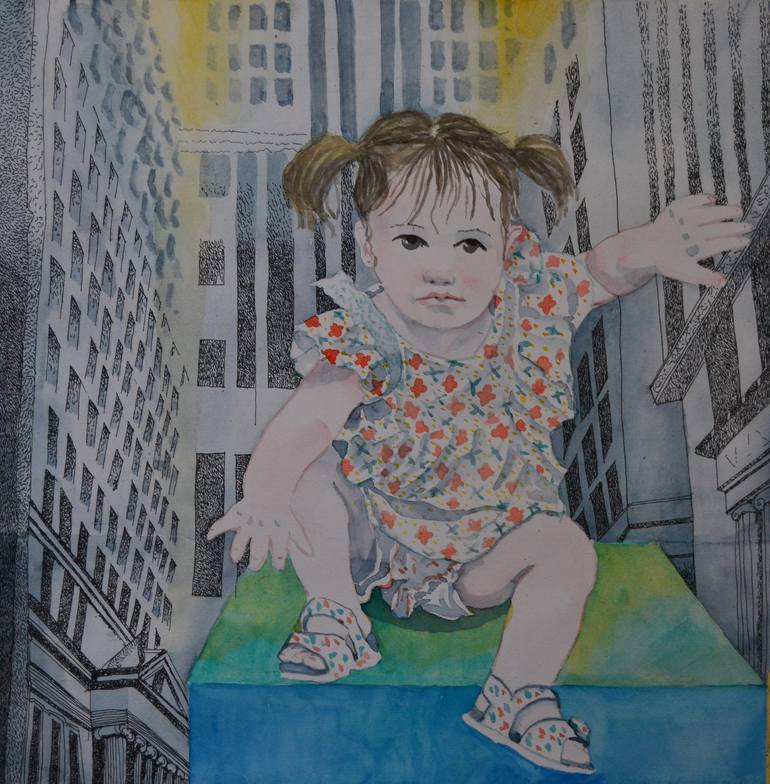 amo molto i bambini, mi piace ritrarli inseriti in contesti che non sono i loro, sia di fantasia che esistenti. In qualunque ambiente inserisco i ritratti di questi bambini, il posto prende connotazioni surreali e festose. La gioia e l'ingenuità dei bambini permea l'ambiente circostante e lo rende i...