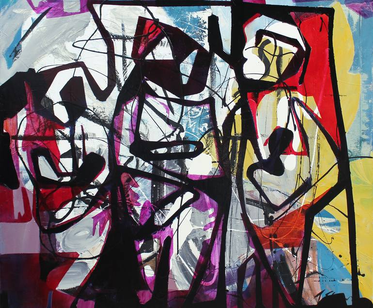Stained glass inspired, figurative, expressionistic, oil on canvas