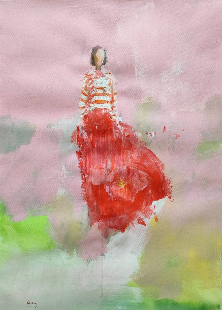 Scene of woman painted in acrylic and watercolor on paper. Portrait of romantic cut. In a world that increasingly we live in a more accelerated way, considering present and future, it seems that words like nostalgia and memories, do not serve ... but we can not deny them, are part of human nature. ....