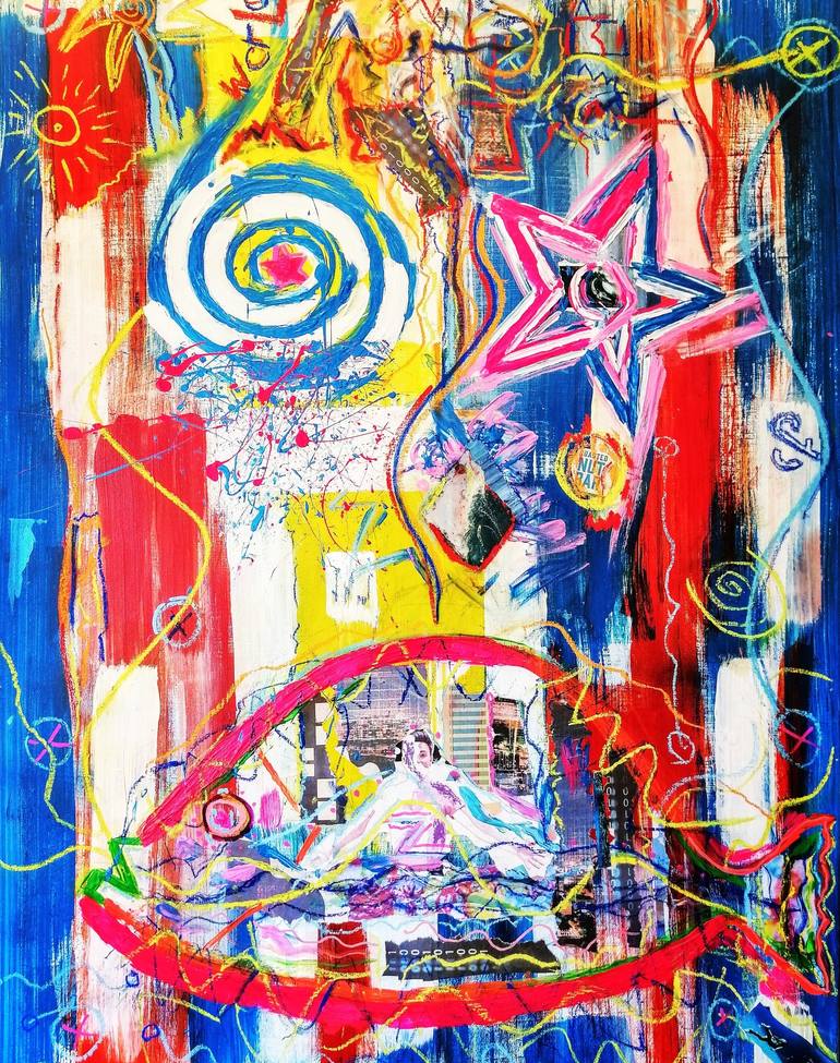 this piece is partially inspired by studies of maslows "hierarchy of human needs".. within a conceptual framework, references are taken from my influences of street /graffiti art.. with an abstract sensibility, commenting on our societal obsession with consumerism... presented on harDboarD, for the...