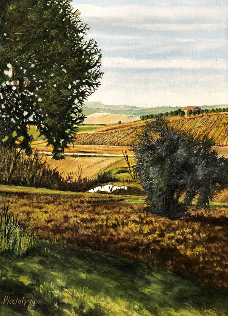The rolling hills near Rimini are cultivated with great care: above all it is rich in large vineyards and olive groves. Here one of the best Italian wines is produced, Sangiovese. I really love walking among olive trees and vineyards, here I rest and draw inspiration for my landscapes, as for this s...