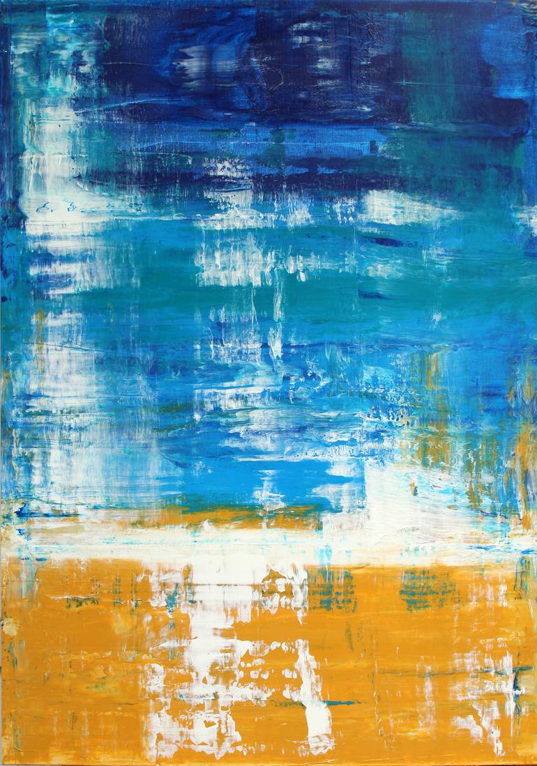 blue and ocher compositon, partly glossy finish, painted edges, ready to hang