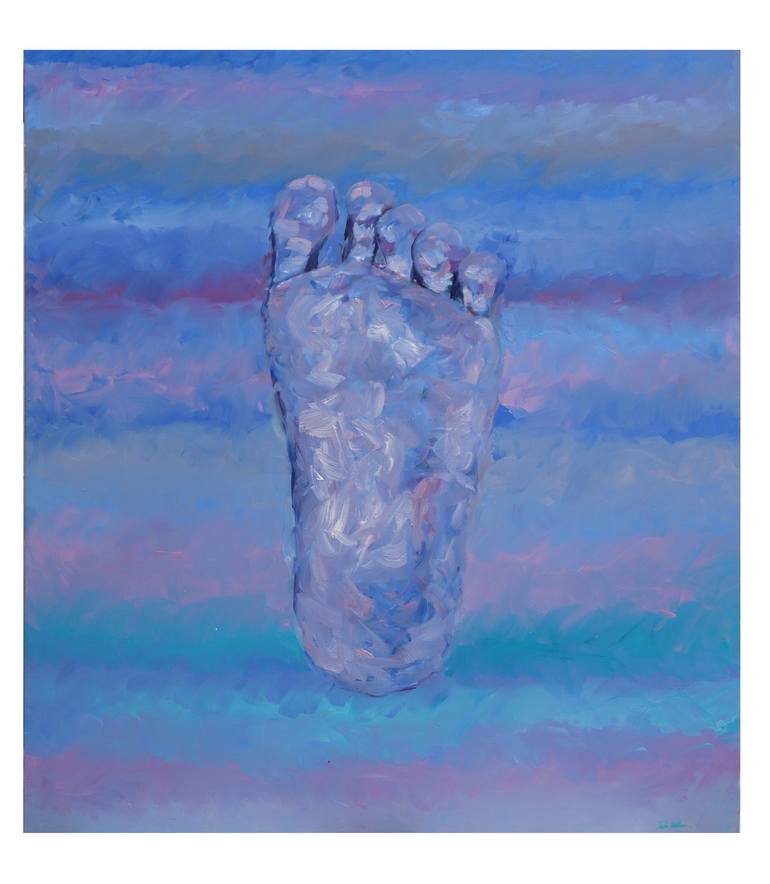 "The Journey" symbolizes the universal path of humanity, highlighting the individuality of each step while connecting us all through shared experience. The single footprint, painted with textured brushstrokes in serene blue and purple tones, represents both the physical and metaphorical journey of l...