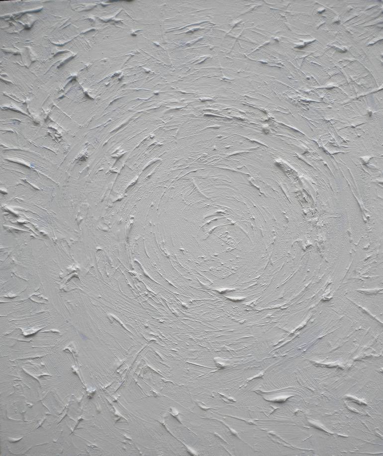 Oil and gesso overlay on a spiral motif on stretched canvas. Based upon the action painting series that I partook of in 2013, after many spiral pictures this one became more of a calm landscape where texture and brush work fuse with light.