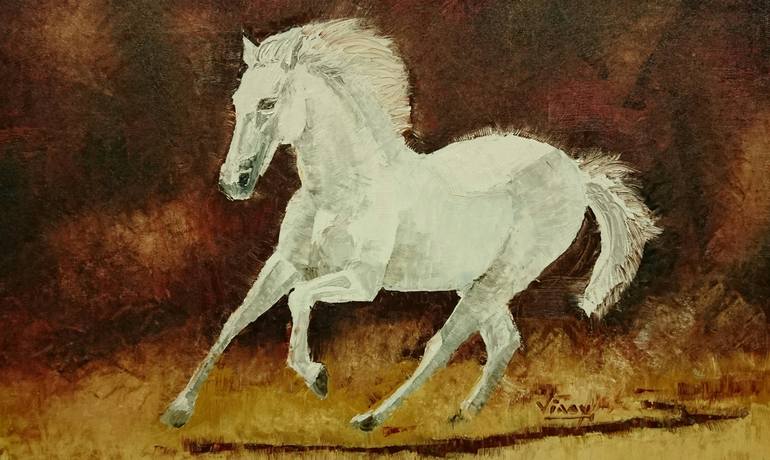 I love horses and often paint them in various moods. Stark white ones stand out very well against a dark backdrop and make a nice picture.