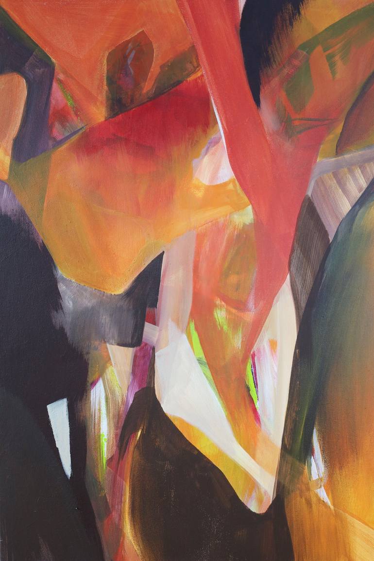 In this piece Eva Bunker deals with the difference in the permeability of color, the density in contrast with transparency. Out comes a work of deep and warm colors which seem to offer an emotional view into an autumn inspired landscape. This painting is unframed.