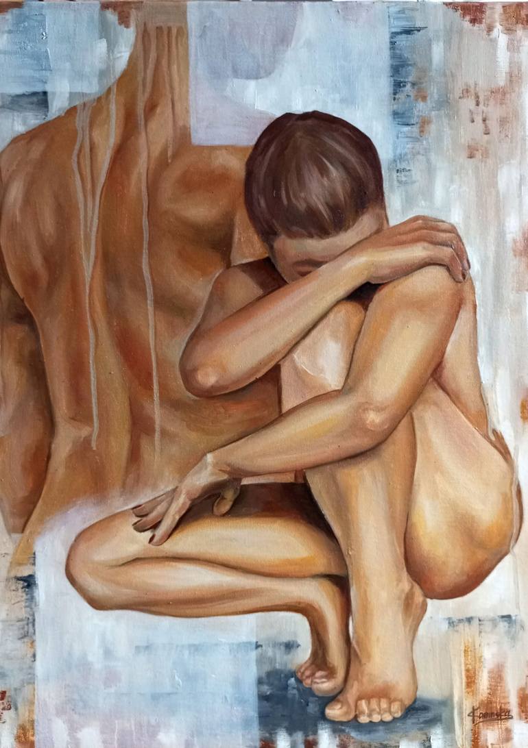 Every woman wants to feel protected and to have her man as her back. The painting depicts a girl who wants to hide from her problems and needs protection. The technique consists of depicting in different planes, using transparency and saturation of the layer, thus dividing the image into the main an...