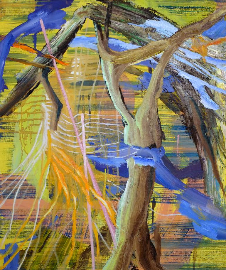 the painting is bild up in more layers of different ways of painting. I use the brush, but also cartons to put paint on the canvas. Sometimes it is very thick and other times I need it transparant, with a lot of terpentine. I want to invite the viewer to step in a world with more dimensions of think...