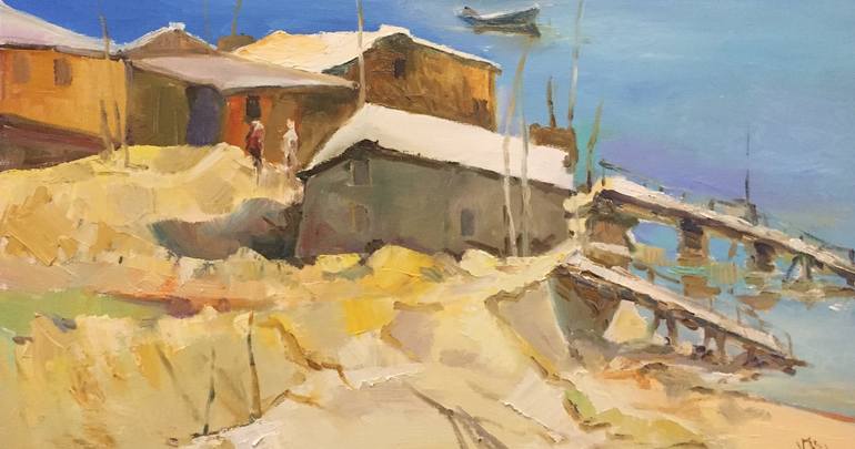 Работа написана с натуры, на пленэре. Очень хорошее сочетание синего и охры. Масло, холст, без рамы. Торцы прокрашены.
