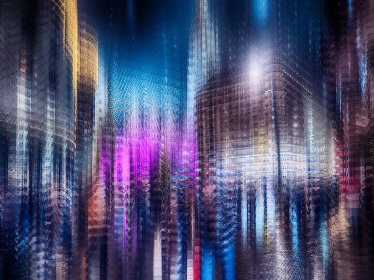 This captivating abstract photograph, "4423", captures a moment of urban energy. The artist uses intentional blur and motion to transform a familiar scene of Stephansplatz in Vienna into a vibrant, dreamlike vision. Printed on Canson Arches Aquarelle Rag paper, the colors in this digital artwork ar...