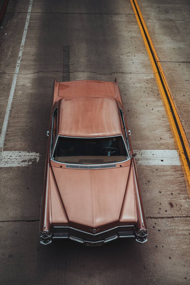 A mauve Cadillac Coupe De Ville on a San Diego, CA city street.