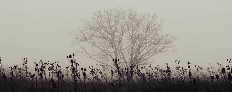 "9341" is a captivating landscape photograph, expertly printed on Hahnemühle Fine Art Baryta paper. The documentary style captures a serene winter scene, drawing the viewer into a tranquil field shrouded in mist. The artist's skillful use of digital techniques enhances the natural beauty of the morn...