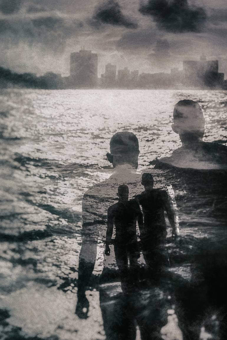 The image is a conceptual piece of two males sharing most probably a special moment by the sea. A scene of closeness, bonding, togetherness, loyalty, and friendship...at one with each other and the sea. They are the only ones who know their story, we can only guess. The setting is Havana bay Cuba c...